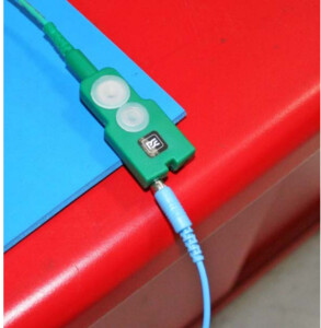 - Make sure that the snap button connector of the ground cord is securely fastened to the ESD mat.