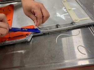 - Use IPA wipes to clean the surfaces where the sealant and gasket were removed, and allow to dry.