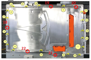- Install new screws (x22) to attach the charger cover to the charger housing, and tighten in the sequence shown (torque 2 Nm).