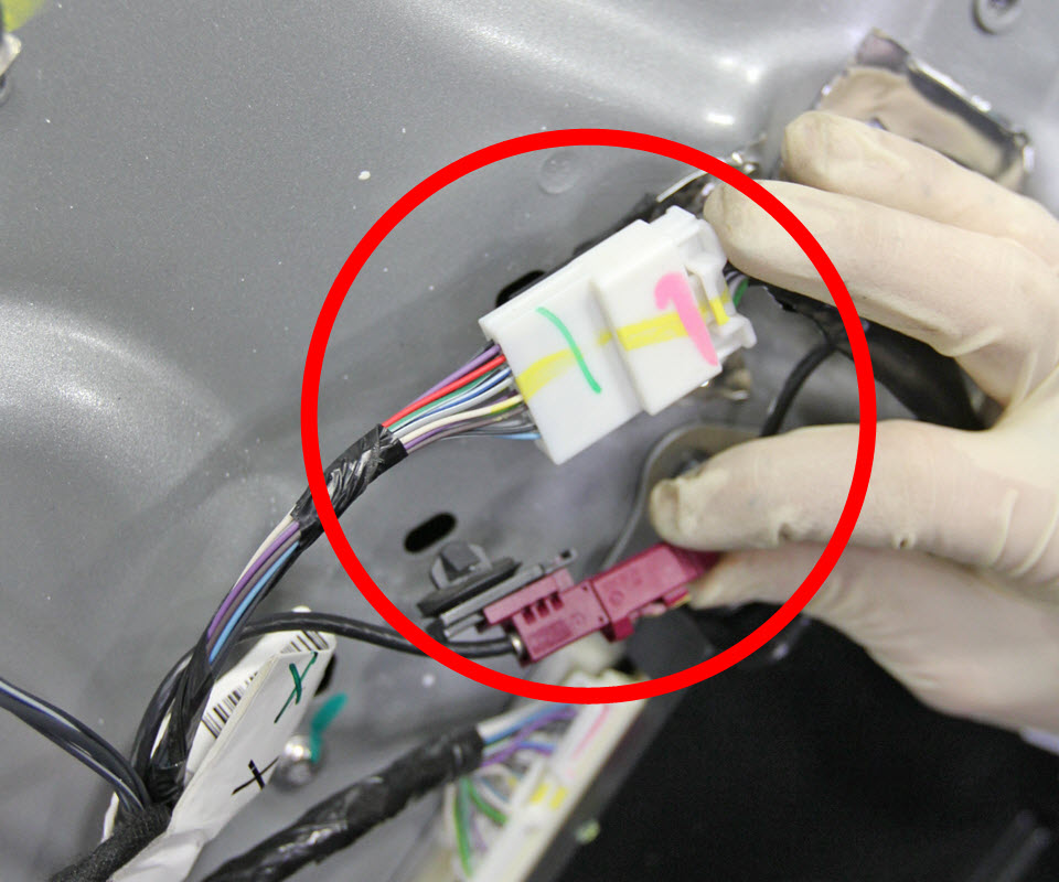 - Release the clips that secure the harness to the door frame. Remove the harness from the door.