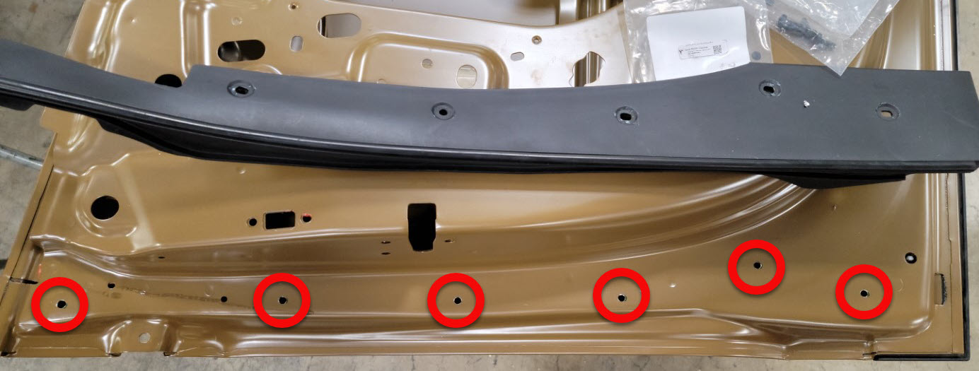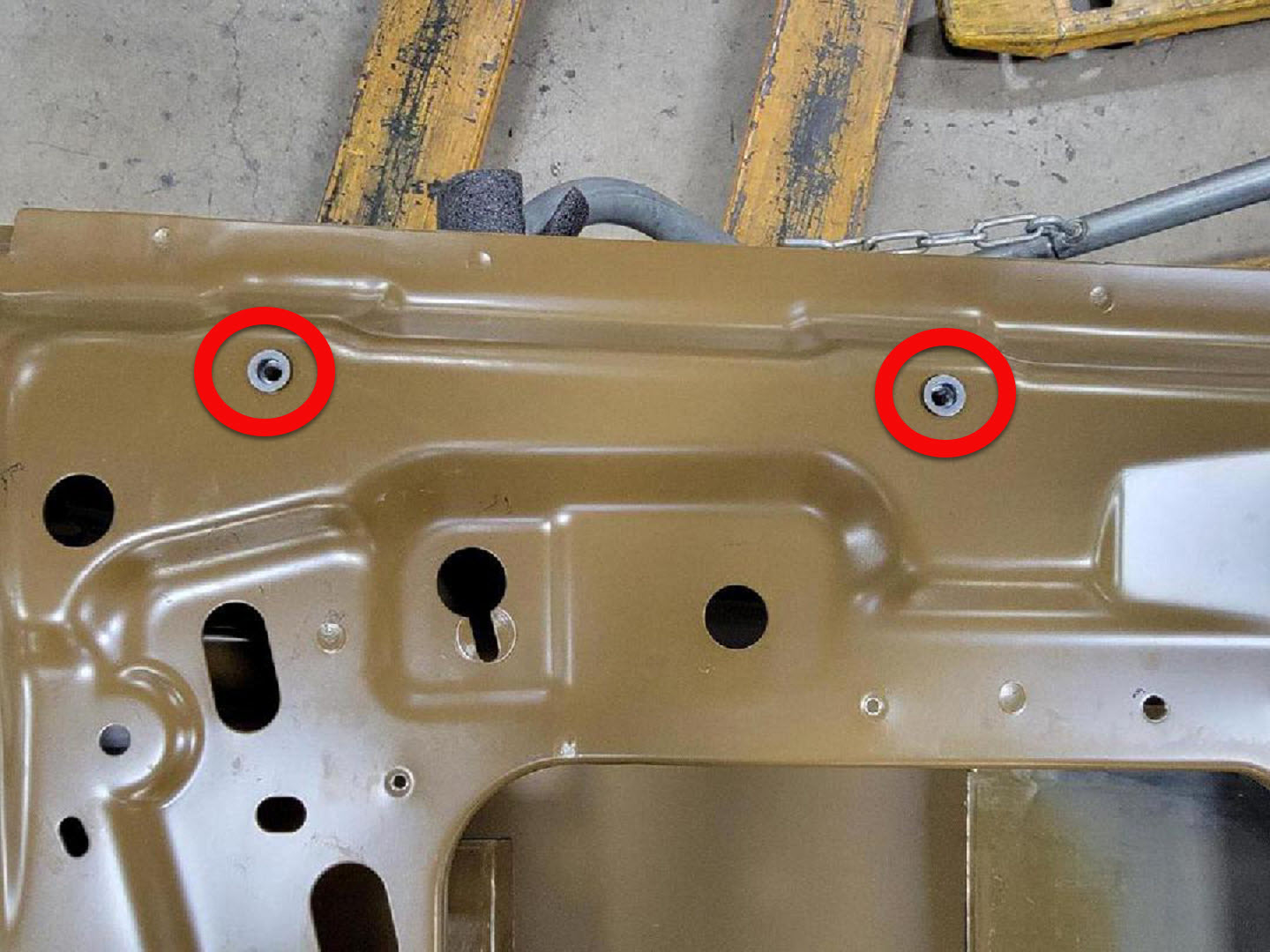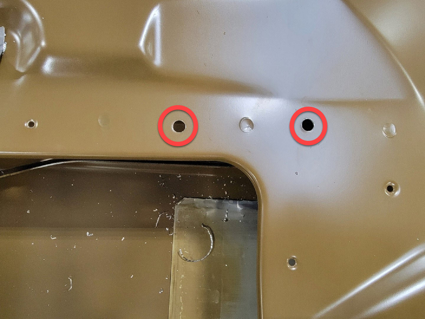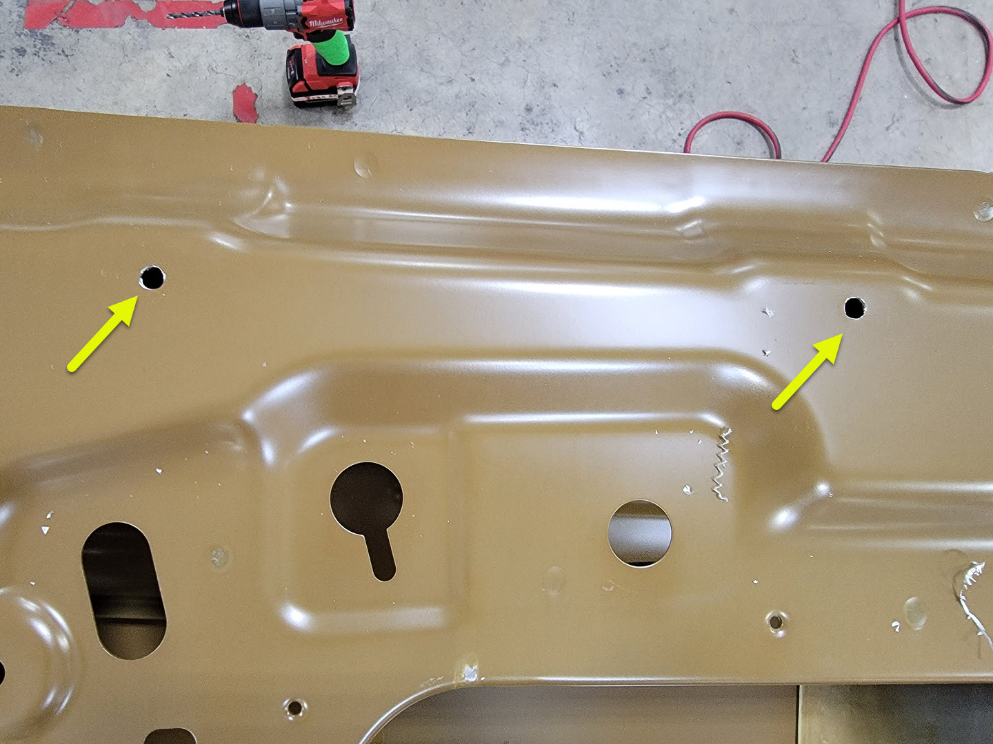 - Drill holes (x2) at dimple locations shown using 6mm drill bit from the drill bit set (1126494-00-A) to support the closeout panel.