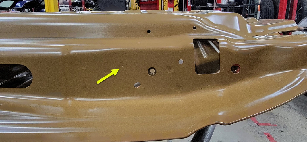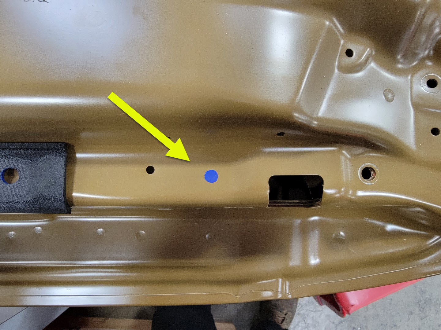 - Drill holes (x2) at dimple locations shown using 9mm drill bit from the drill bit set (1126494-00-A), and then install rivnuts (M6x0.5-3).