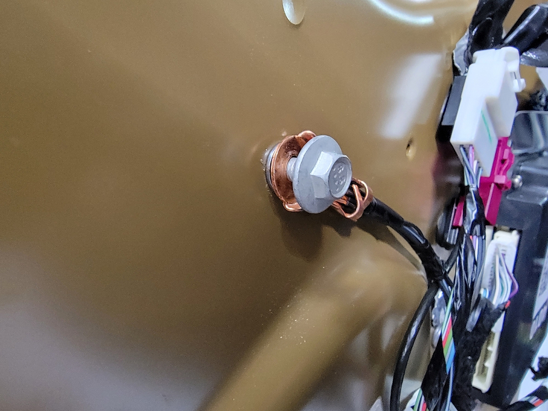 NoteUse original ground bolt and clip onto the rear of the window regulator.