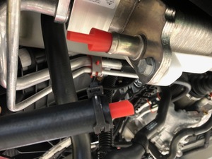 - Install dust caps (x2) onto the vehicle high and low side service ports.