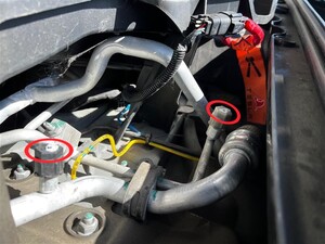 Remove the nut that attaches the A/C lines to the chiller EXV.