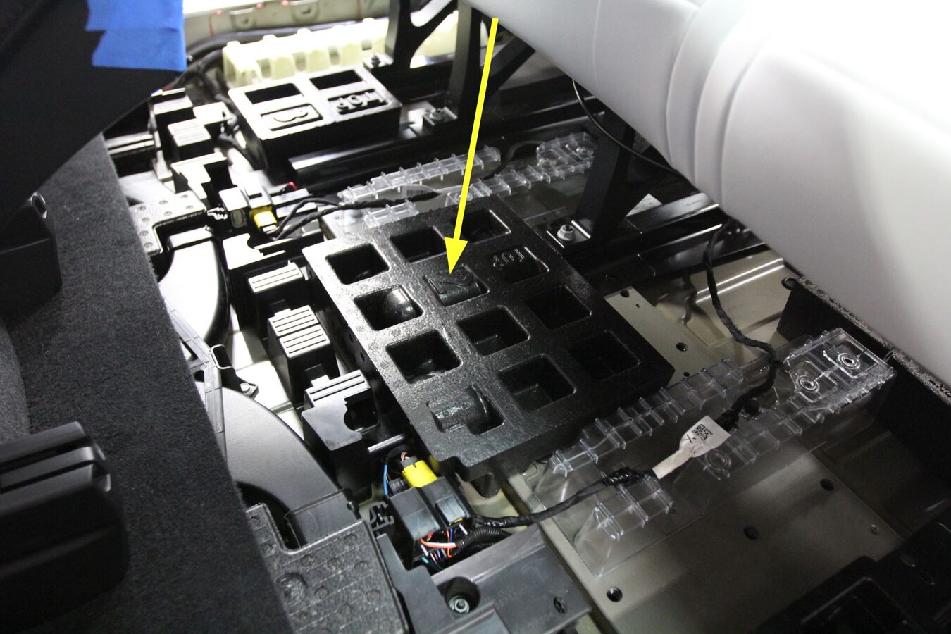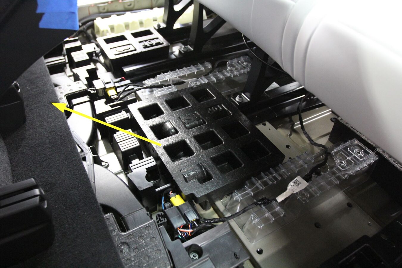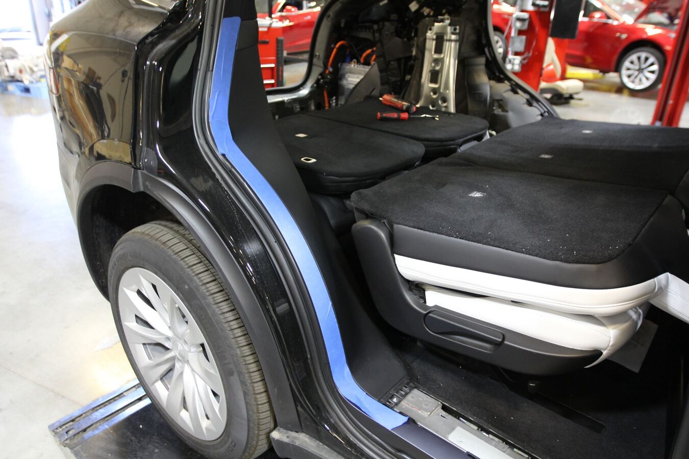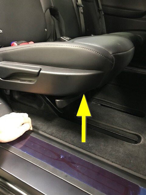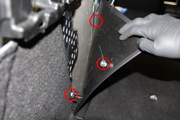 - Tape the RH lower C-pillar area around the 2nd row seat side trim area