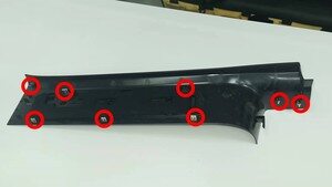 - Release clips (x9) securing RH C-pillar mid trim and remove