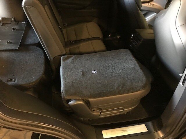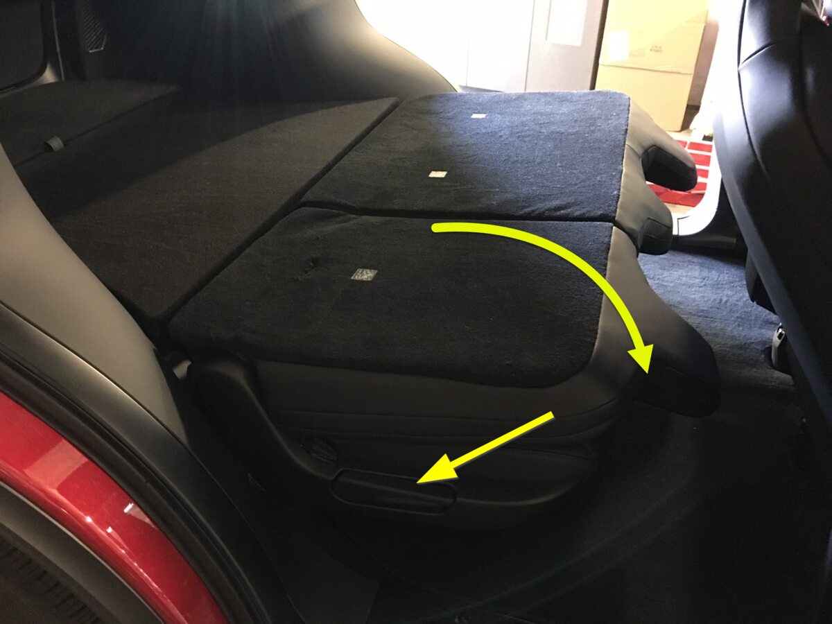 NotePress button located on LH 3rd row seat back assembly near headrest, lift seat back into an upright position