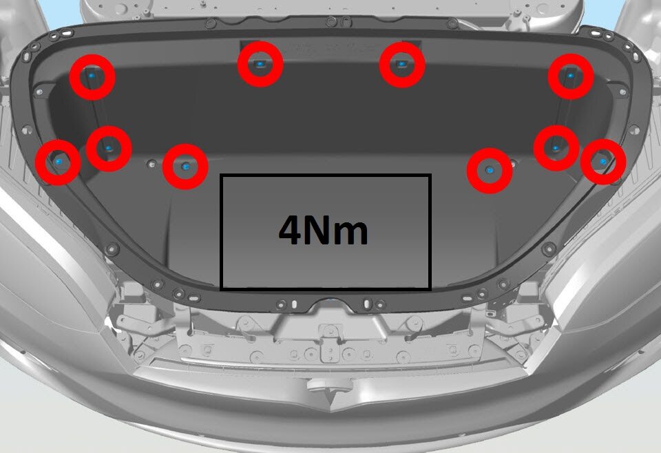 Note10x bolts, 10mm, 4 Nm, 10x bolts, 10mm, 7 Nm