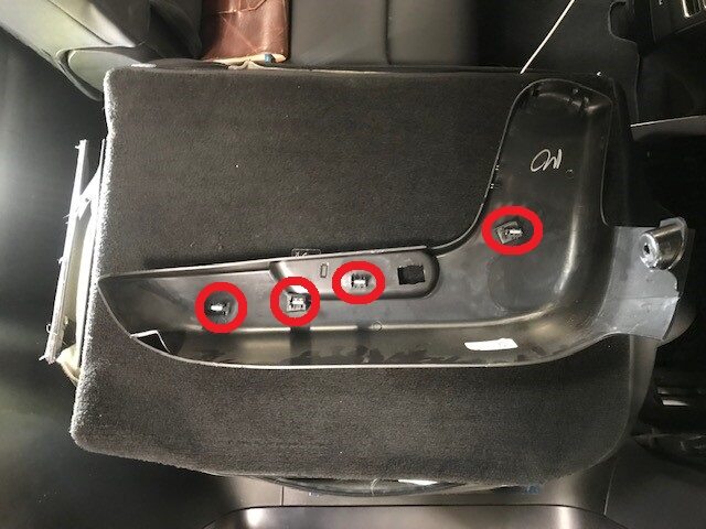 - Tape the LH lower C-pillar area around the 2nd row seat side trim area.