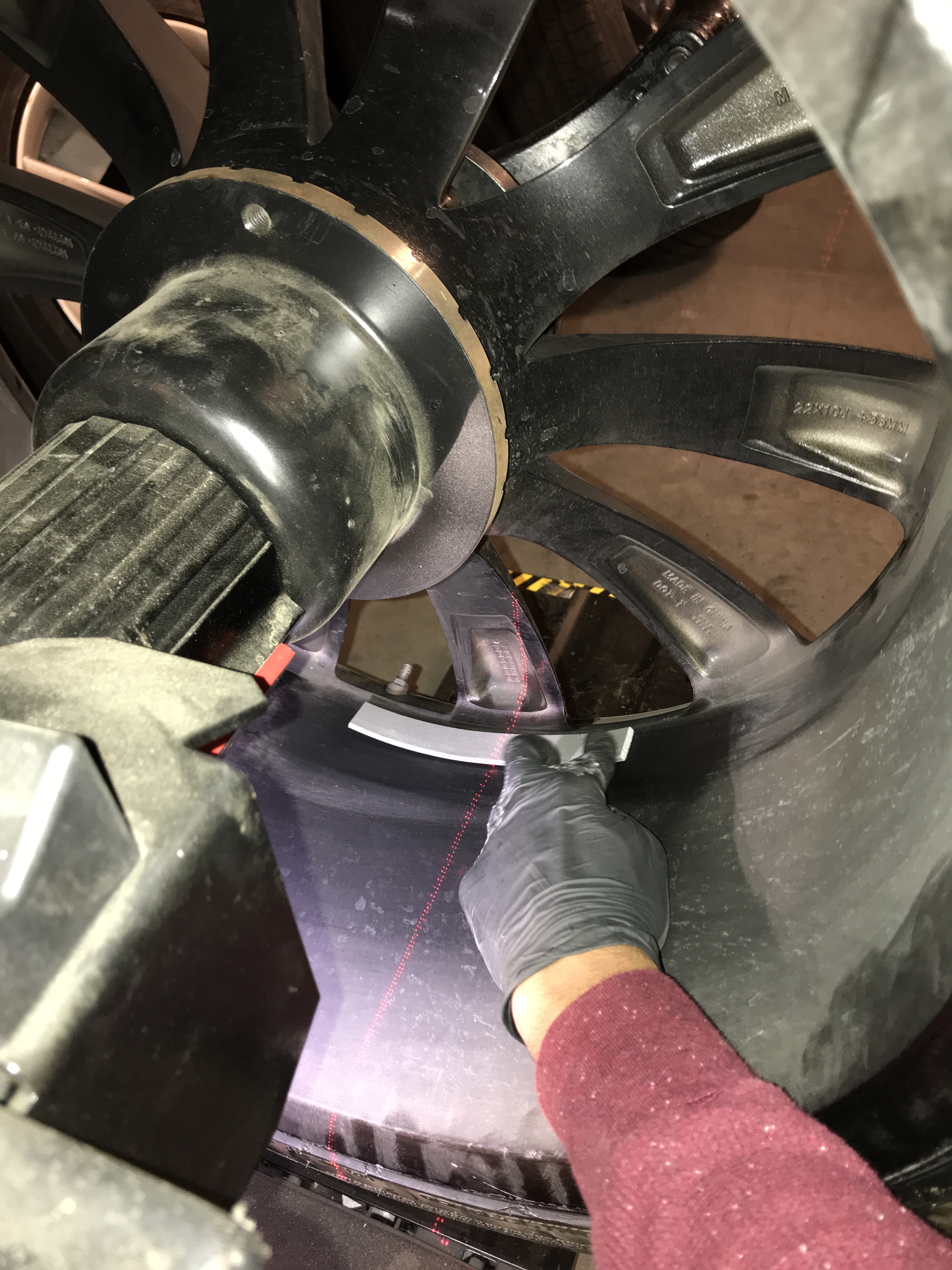 Install new wheel weight(s) centered on the red laser line(s) projected by