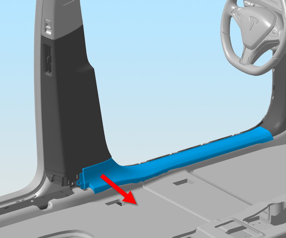 - Pull the rearward section of the sill panel toward the middle of the vehicle to release the clips that secure it to the B-pillar.