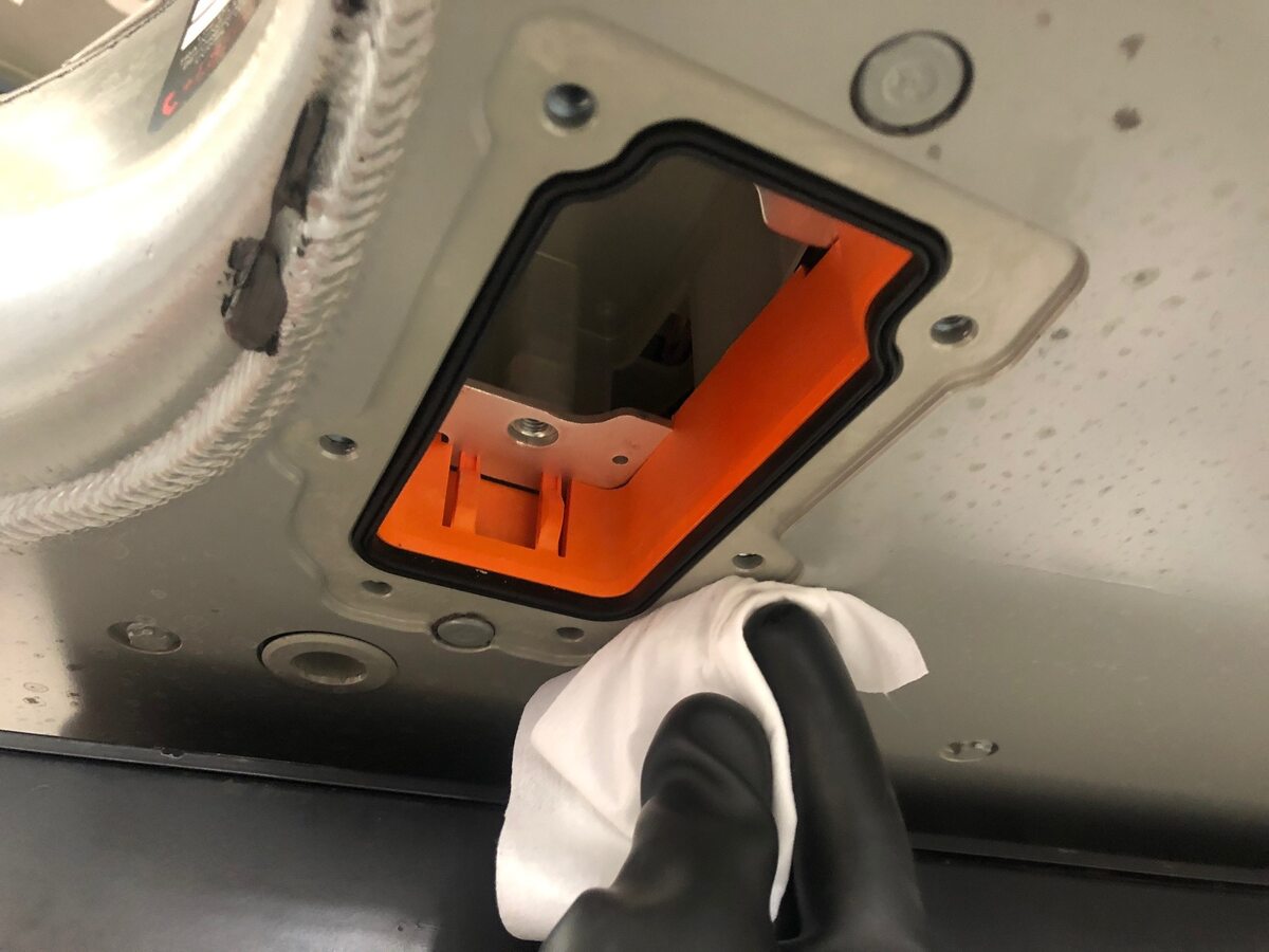 - Use a vacuum to clean the area around the ancillary tray, the LV Rapid Mate, and the HV Rapid Mate to make sure that there is no dust or debris that can enter the battery.