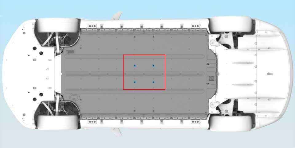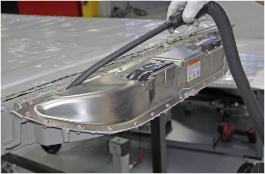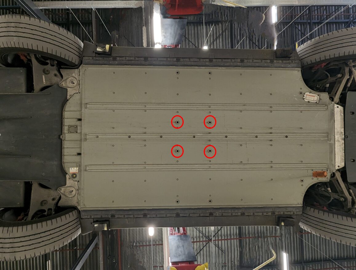 Loosen the center bolts (x4) that secure the HV battery. After all 4 bolts have been loosened, use a battery powered drill to remove and discard the bolts.