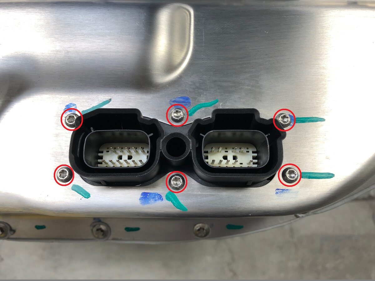 Install new screws (x6) to attach the LV Rapid Mate connector to the ancillary cover.