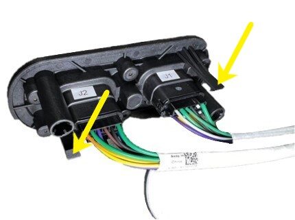 - Install the retaining clips (x2) that attach the LV Rapid Mate connector to the guide pins on the ancillary tray.
