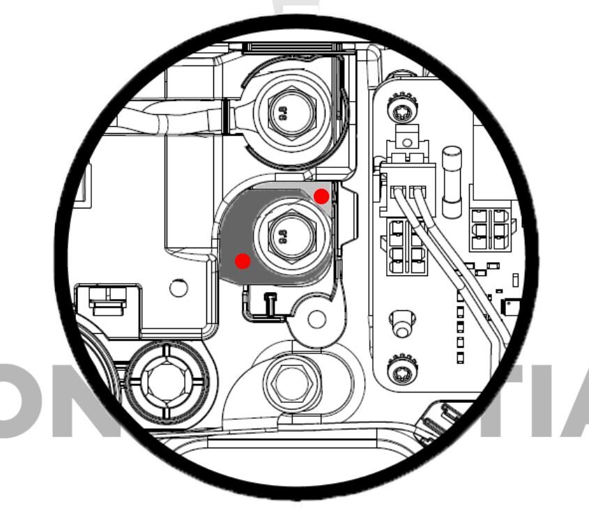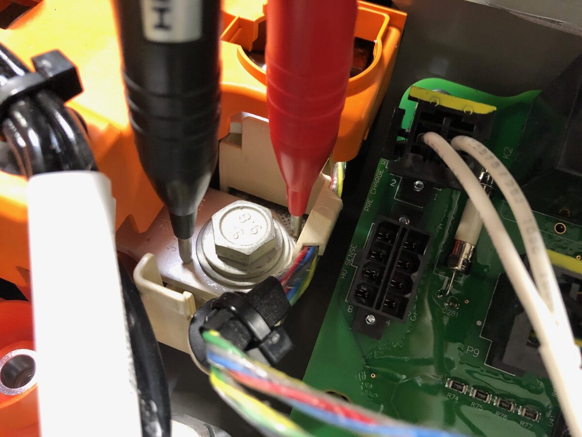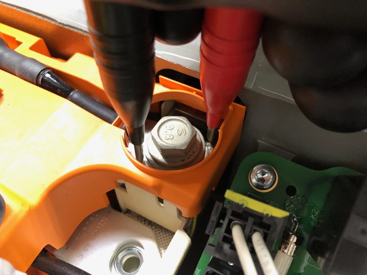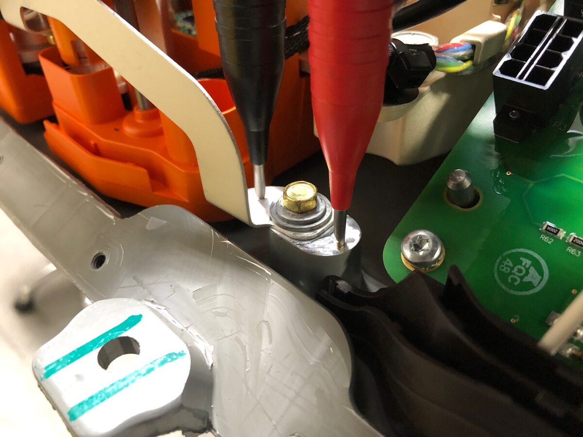 - If the impedance is greater than 0.150 mΩ (150μΩ), there is too much resistance in the High Voltage joint. Remove the fastener, clean areas with isopropyl alcohol, install fastener back and test again.