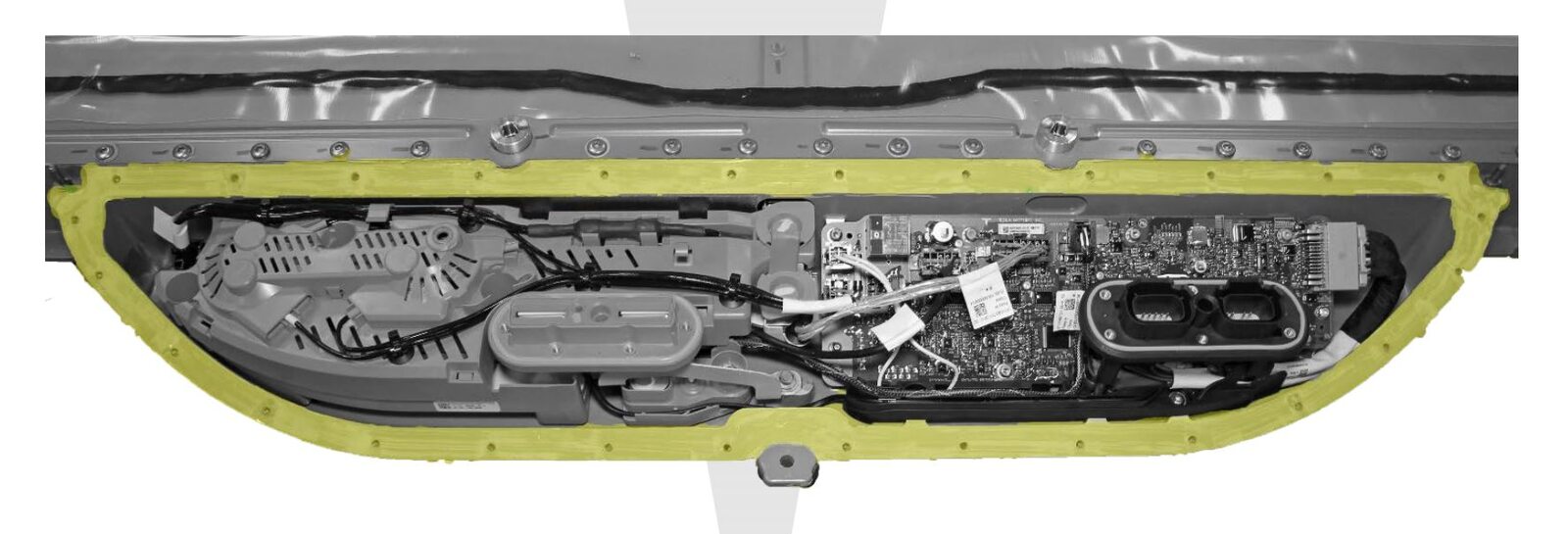 - Apply a bead of Three Bond sealant to the ancillary tray sealing surface on the HV battery.