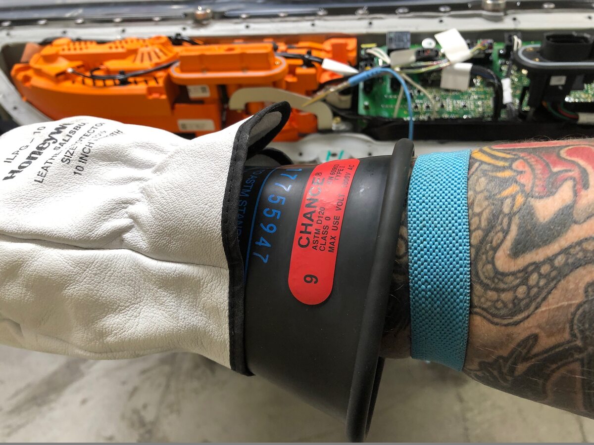 - Inspect the condition of the HV rubber gloves and protective outer gloves. Do not use any PPE that is out of date, leaking, or otherwise compromised.