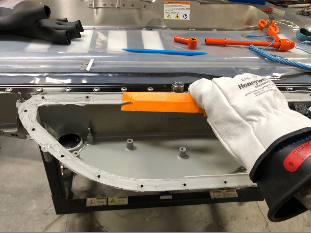 - Remove the HV Danger placard from top of the battery.