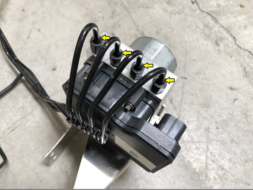 - Remove the ABS modulator from the vehicle with the 4 tube bundle still attached to the ABS modulator.