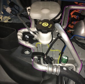 - Remove the A/C line assembly that blocks the electromechanical brake booster assembly.