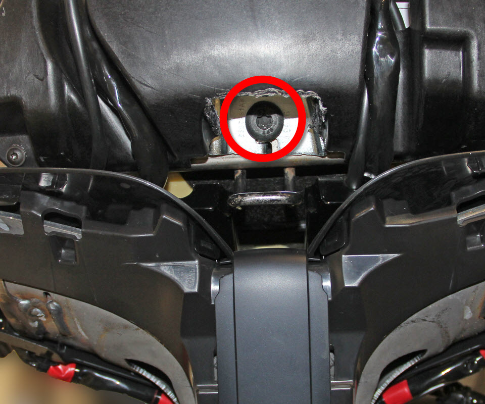 - Remove the screws that secure the plastic trim to the bottom of the seat frame.