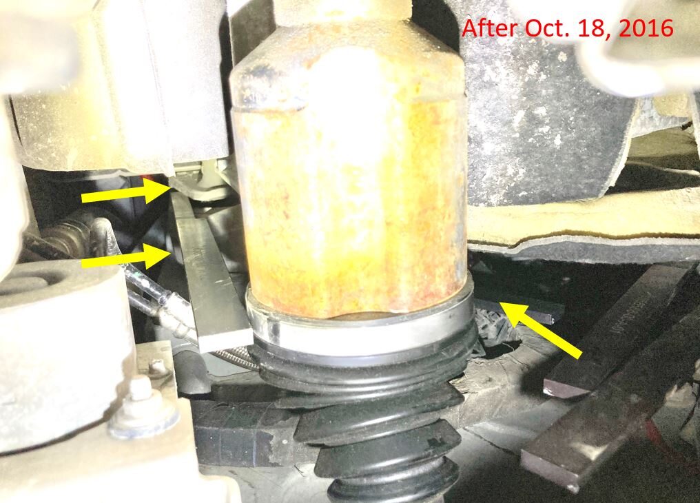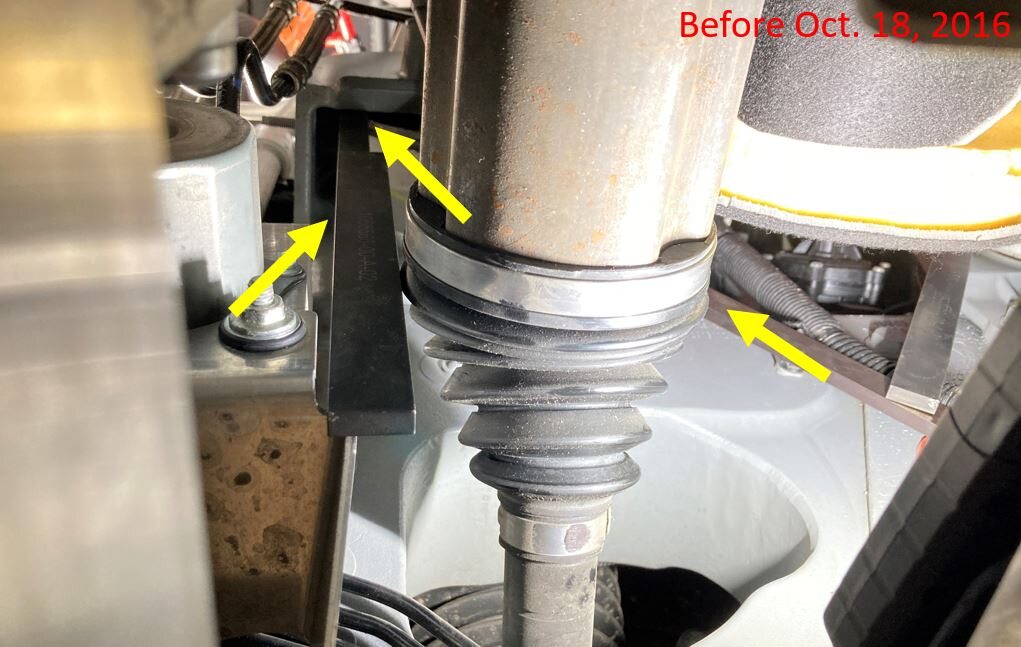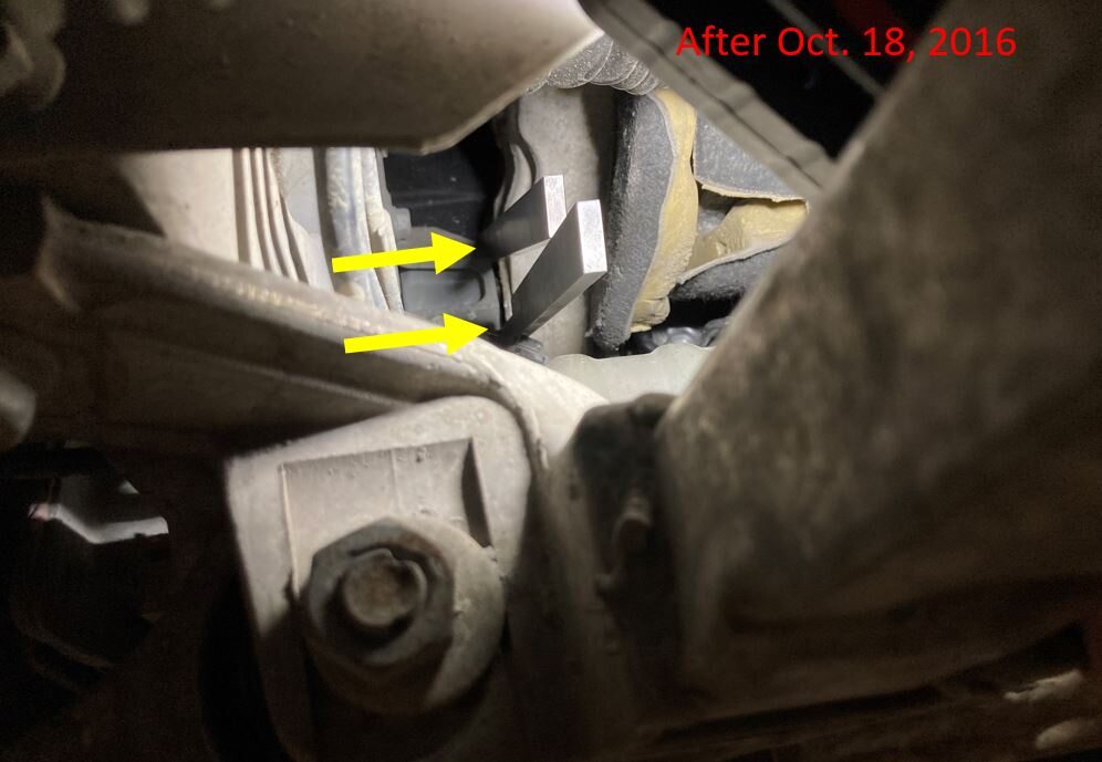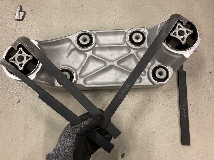 - Check that the drive unit mount locating shims are able to easily slide in and out of the mounts. If necessary, loosen and re-torque the clevis bolts until the shims easily slide in and out of the mounts.