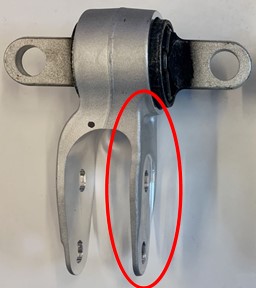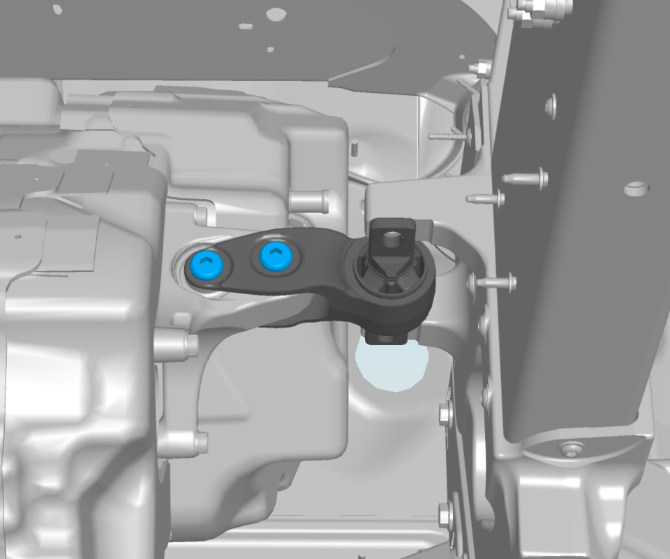 - Remove and discard the bolts (x2) that attach the LH front drive unit clevis to the isolator mount, and then remove the clevis from the vehicle.