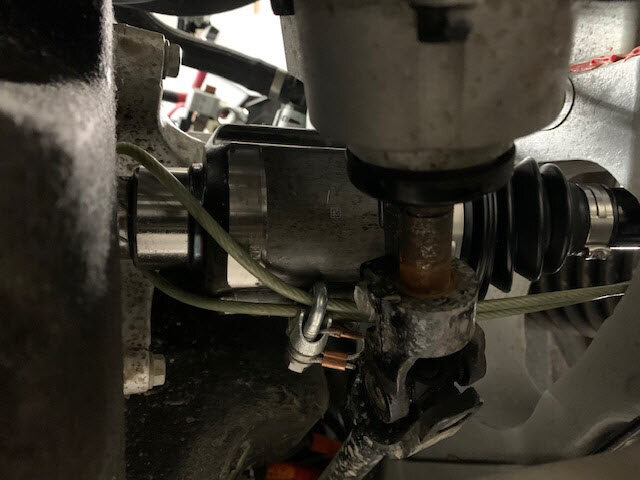 - Torque the bolts (x2) that attach the LH front drive unit clevis to the isolator (torque 50 Nm).