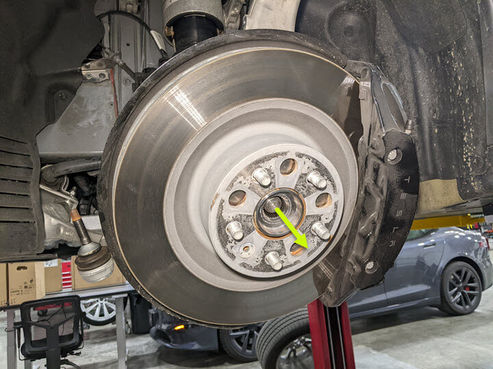 NoteTorque at a later step. Use the nut without the washer to pull the shaft through the hub, then remove the nut and install a new washer. Do not use power tools as the risk of stripping the threads is very high.