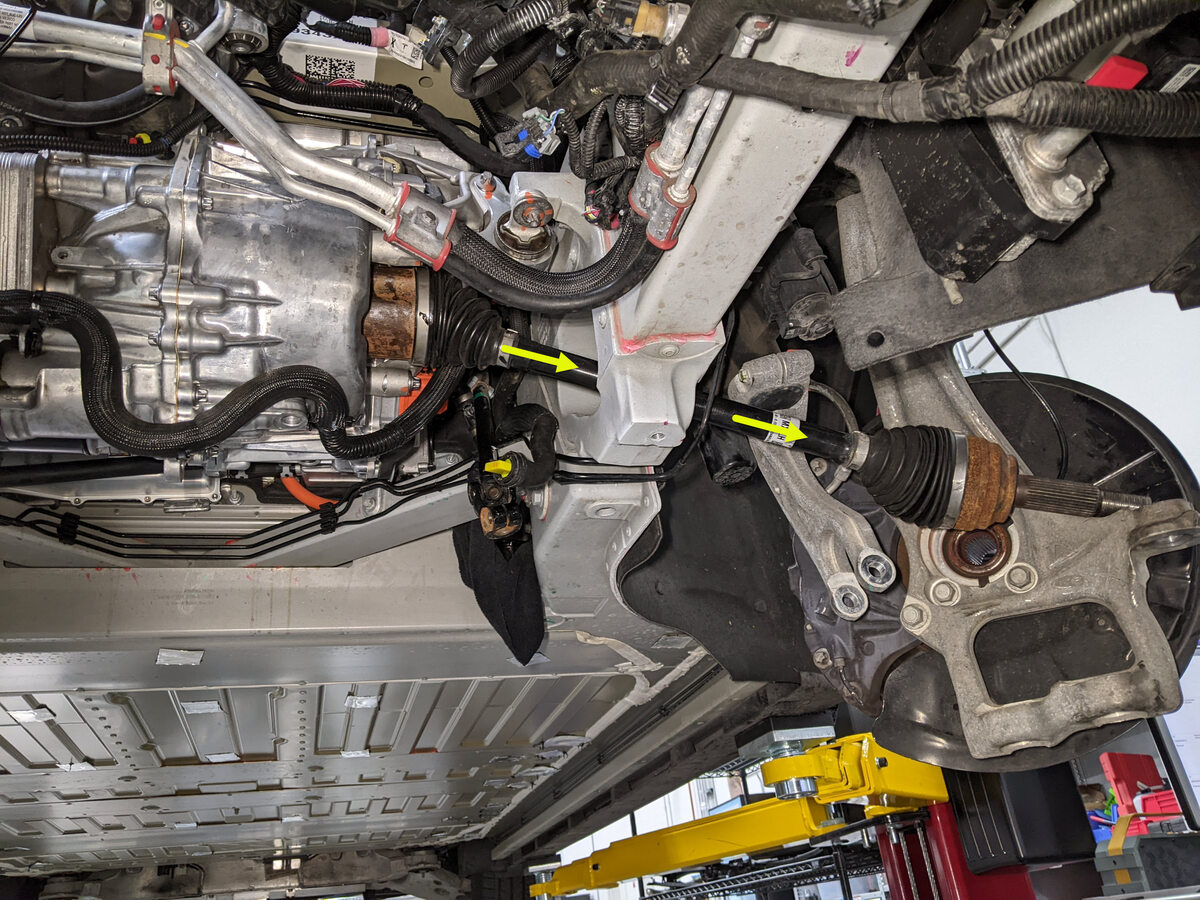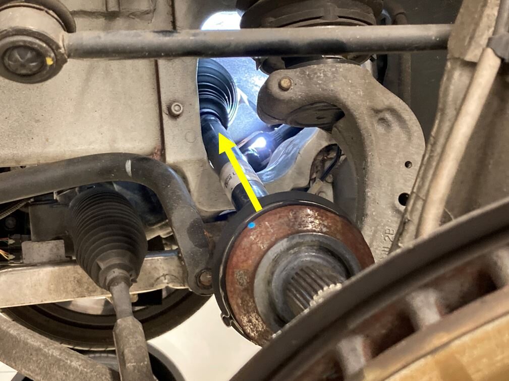 - Use the hub puller to free the LH halfshaft from the hub splines.