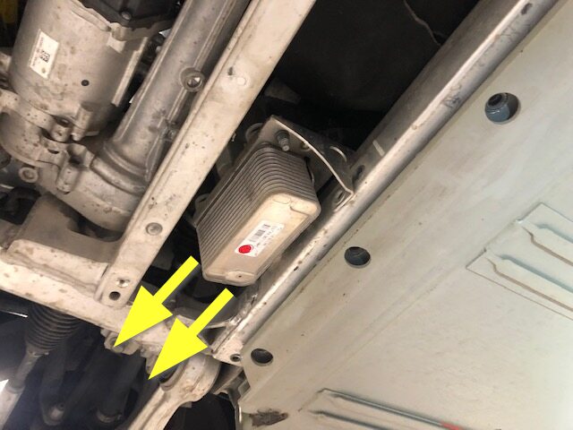 - Reinstall the bolts (x2) that attach the chiller to the subframe (torque 12 Nm)