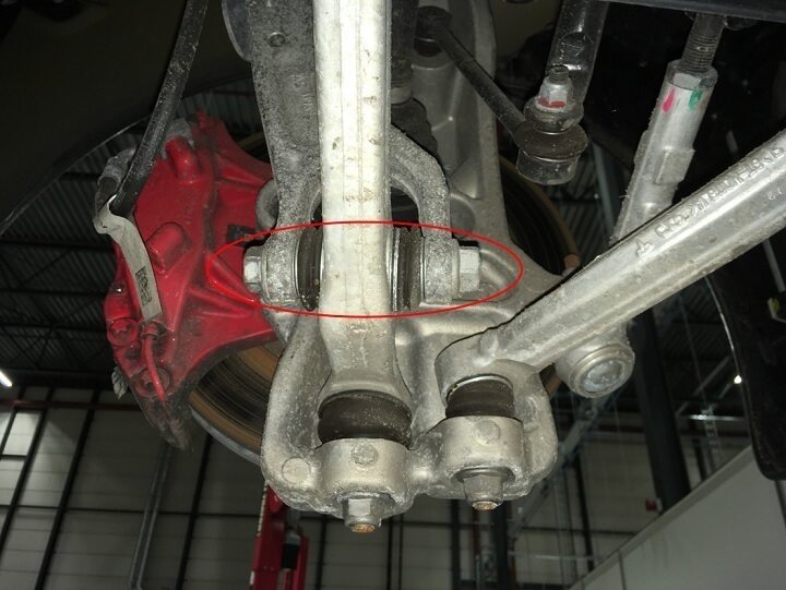 - Remove the nut and bolt that attach the LH front air spring module to the front lower aft link.