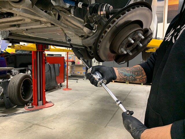 - Torque the LH front wheel lug nuts (x5, torque 175 Nm).