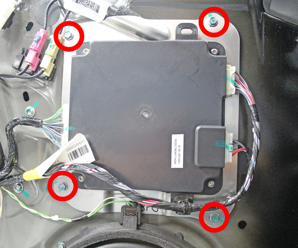 Install new bolts (x4) that attach the module bracket to the door (torque 6