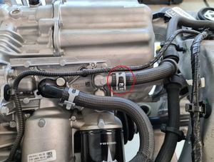 - Release the clips (x4) that attach the outlet hose to the drive unit, and then remove the outlet hose assembly.