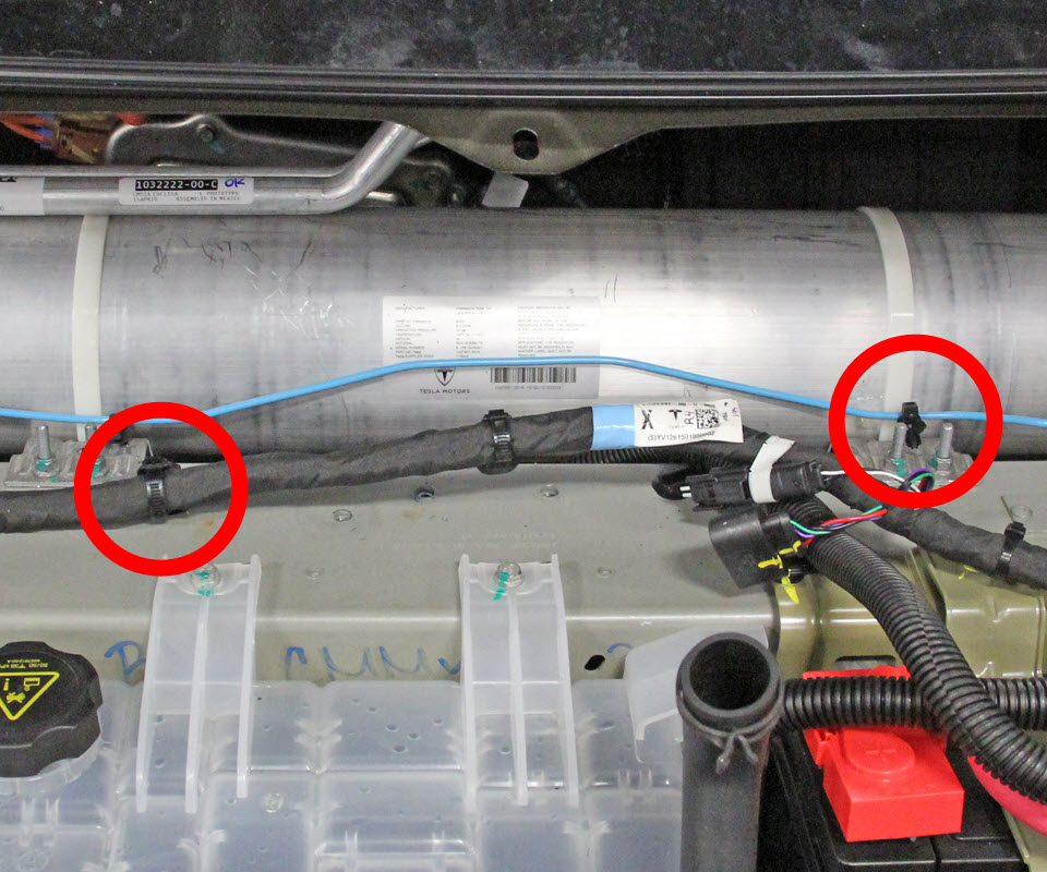 - If equipped, release the 2 clips that secure LHF air suspension line.