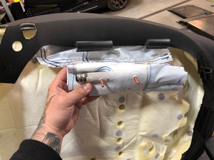 still inside through the seatback foam, and then carefully remove the airbag from the