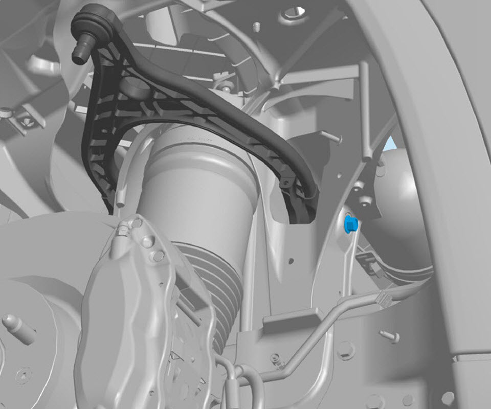 - Install the front upper control arm, and then hand tighten the bolts (x2) that attach the front upper control arm to the vehicle.