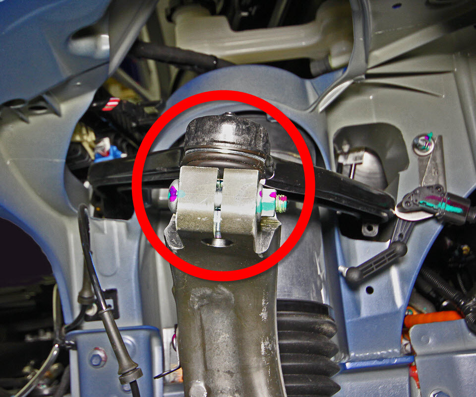 - Release the rubber grommets that secure the front wheel speed sensor harness to the body and the knuckle.