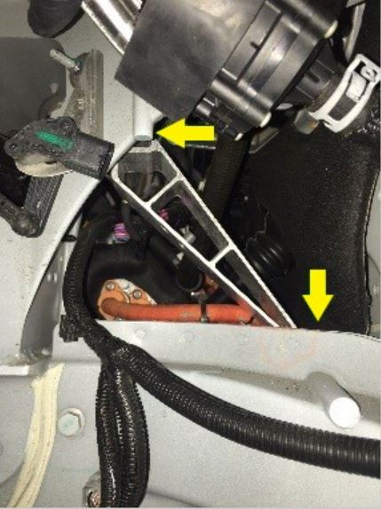 - Remove the bolts (x3) that secure the underhood fuse box bracket to the body (torque 7 Nm).