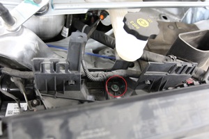 - Gently move the underhood fuse box to the right to provide access.