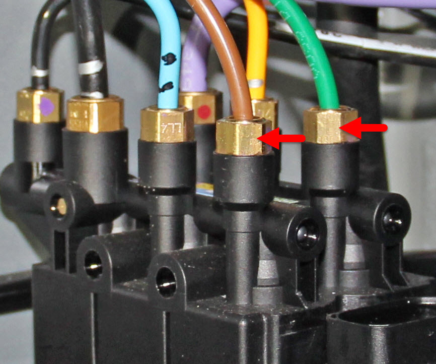 - Remove the air spring module lines (green and brown) from the vehicle.