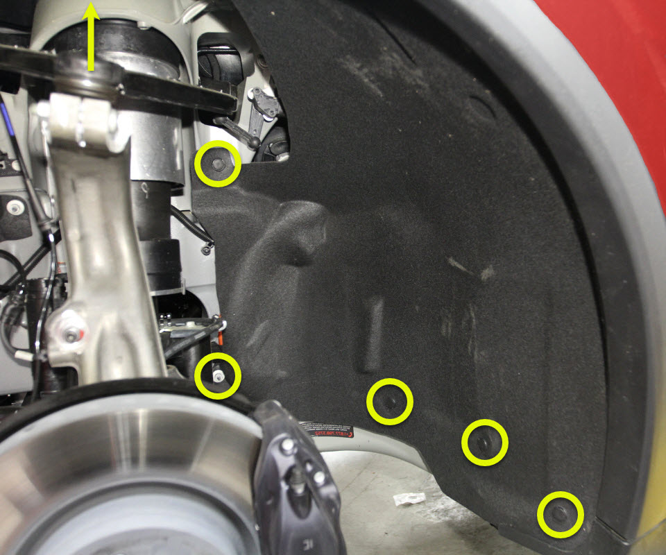 - Remove the push clips (x5) and nut that attach rear half of the wheel arch liner to the body