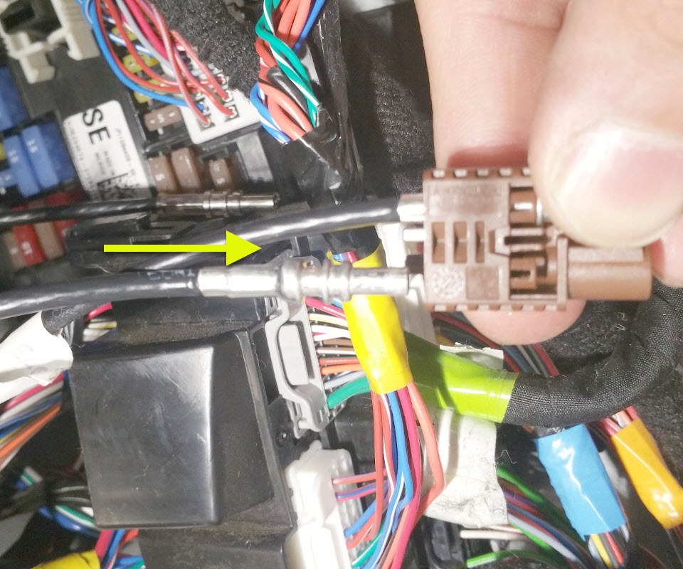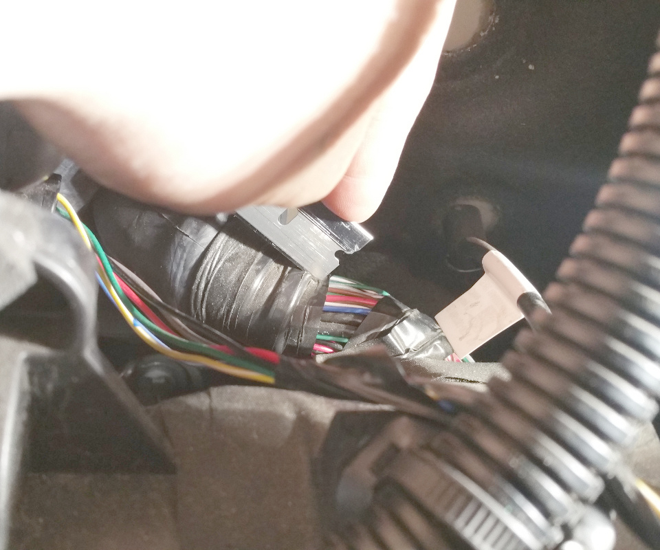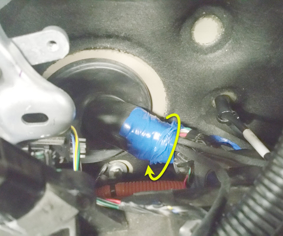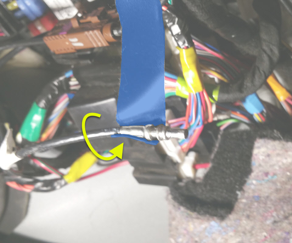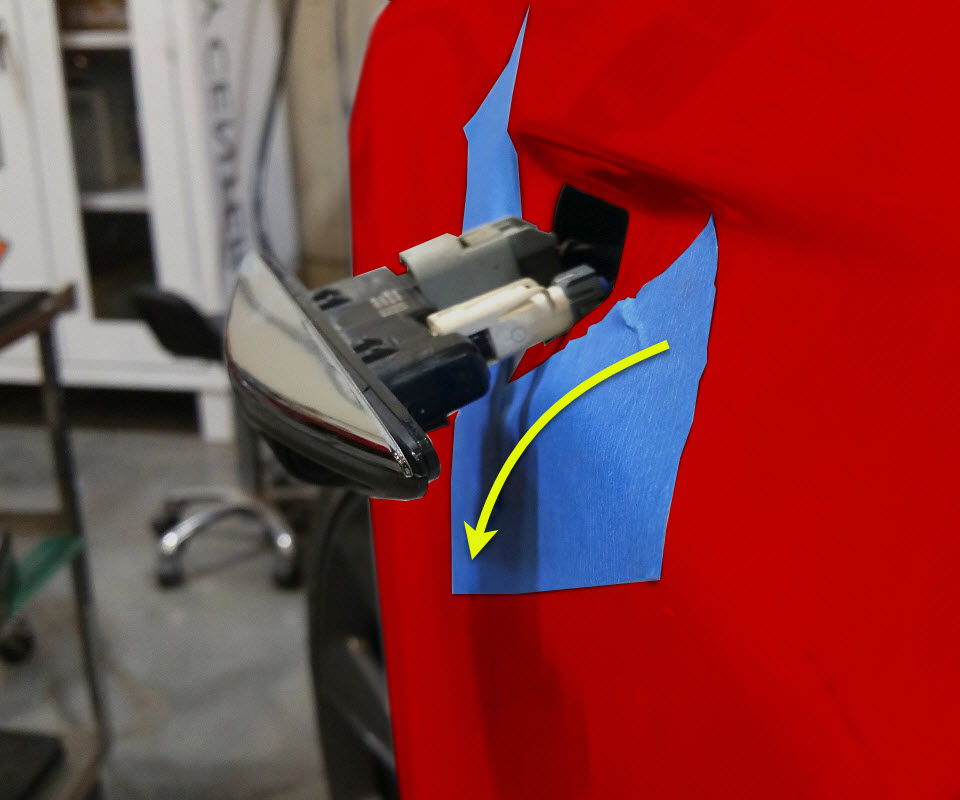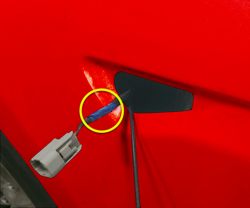 - Remove the connector from the old coax cable, and attach the old coax cable to the LH repeater light electrical harness with tape.