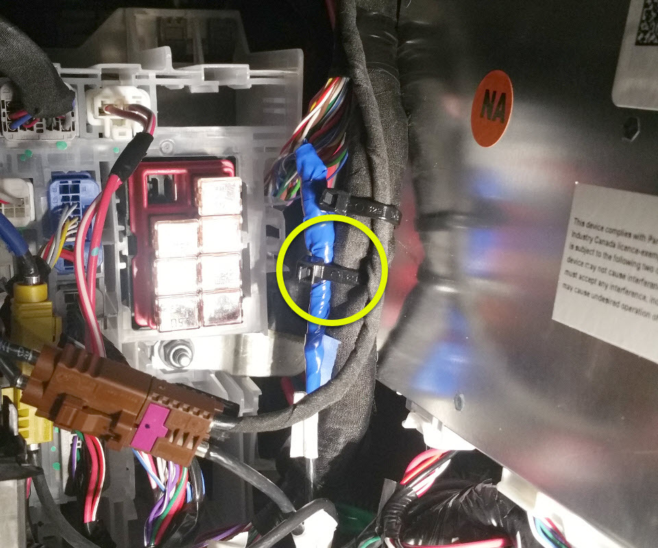 - Attach the coax cable to the body electrical harness with a cable tie.