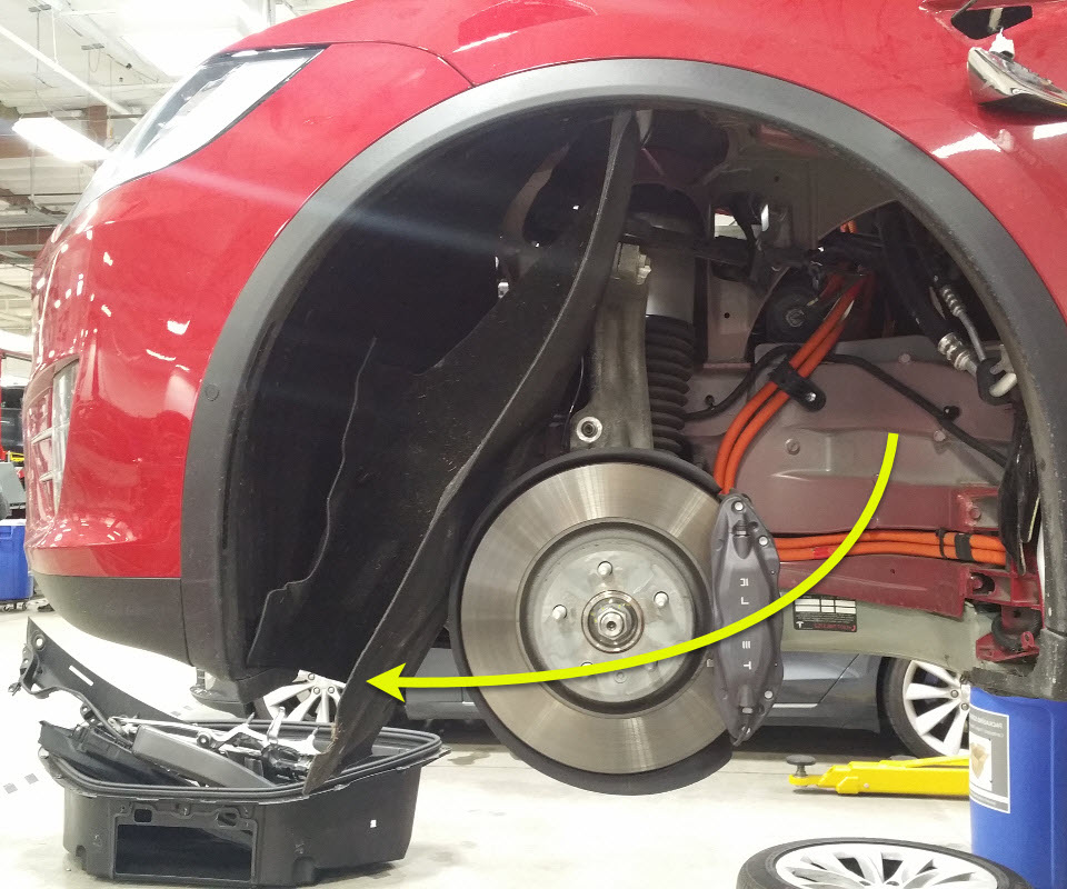 - Fold the liner forward, and then place the liner between the brake rotor and fascia.