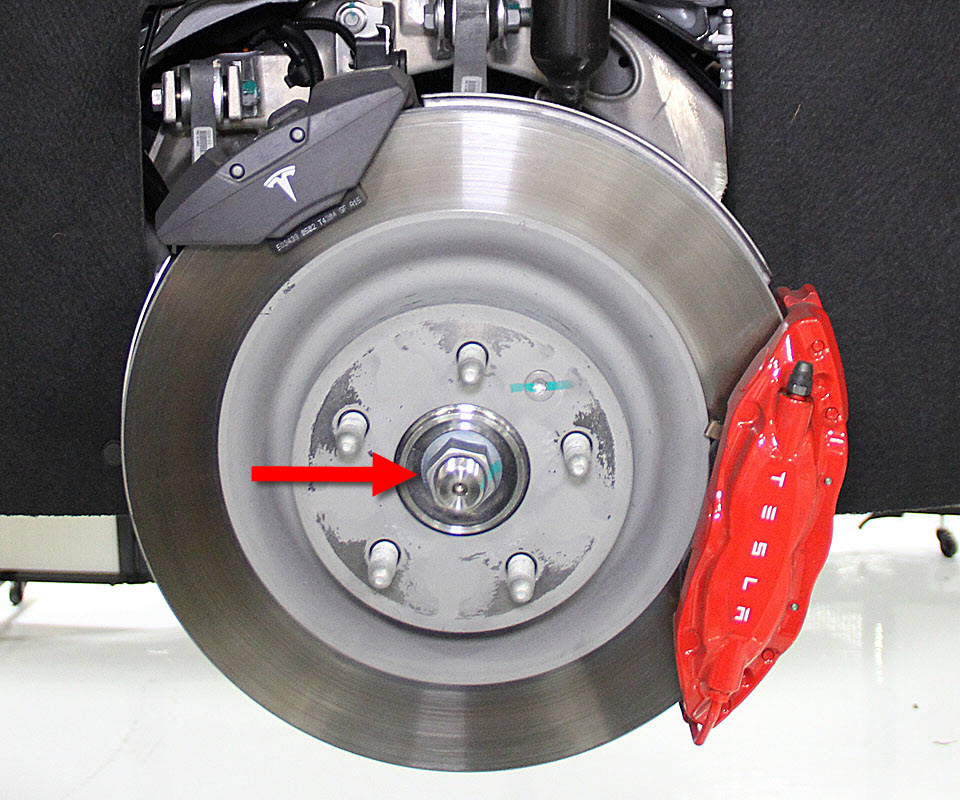 - Remove and discard the axle nut (torque 245 Nm). The axle nut must be replaced during reinstallation.