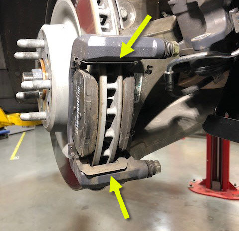 NoteIf performing this procedure as a Mobile Service, chock opposing wheels to prevent rollaway, service the front calipers, and then service the rear calipers.
